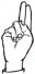 На ћирилици написано МИРОСЛАВ КЛИНЦОВ састоји се из 15 слова [?]. Исписано ћириличном једноручном азбуком за глувонеме:
